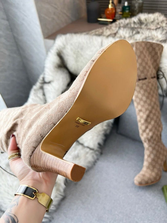 GUCCI Monogram Thigh High Boots