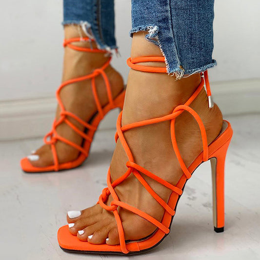 2022 Bairuilun Women Lace Up Sandals Summer Fashion up Shoes Ladies Knot High Heel Women Lace Up Sandals