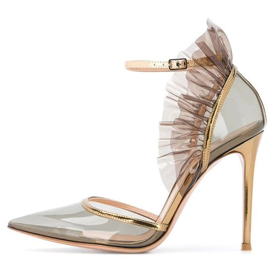 Women Metal Buckle Sexy High Heeled Shoes Pointy Toe Open Toe Ankle Strappy Stiletto Heeled Sandals