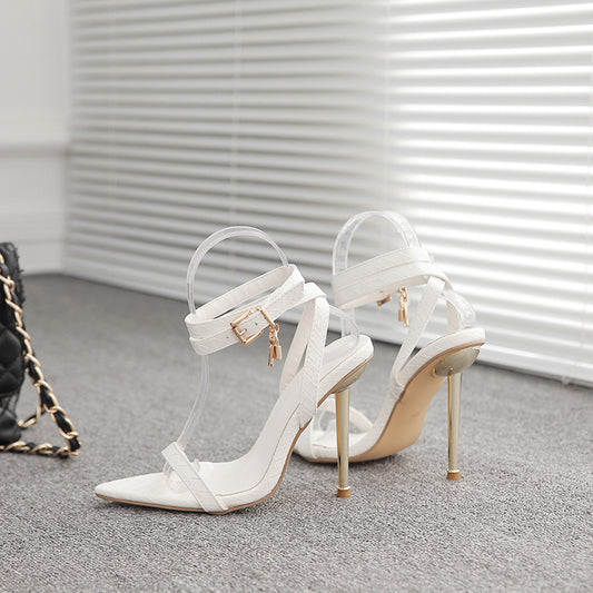 PDEP 2022 Sexy Summer Ladies T-Strap Ankle Wrap Party Dress Shoes Steel Toe Jelly Stiletto Heels For Women