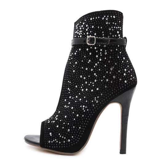 New Arrival Elegant PU Leather Rhinestone High Heels Shoes Fashion Sexy Plus Size Open Toe Sandals for Women and Ladies