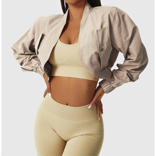 Winter Pleated Sleeves Velvet Cropped Short Jacket Leather