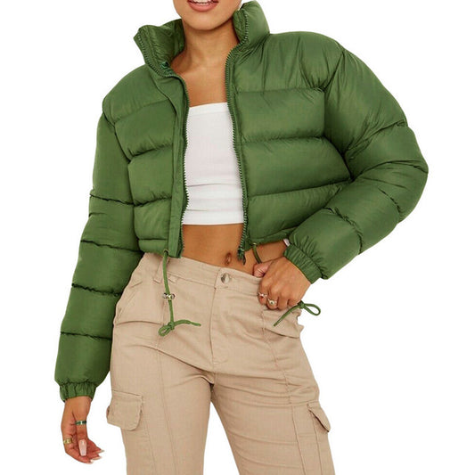 Long sleeve crop top windproof coat short cotton-padded jacket