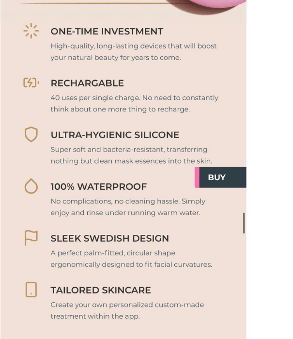Designed with a combination of cutting-edge technologies, this revolutionary device leaves you with an instantly nourished, healthy glow from the very first use. UFO™ features instant warming to infuse active mask ingredients deep below the surface of the skin (where they work best), quick cooling to shrink pores & reduce puffiness, full-spectrum LED light to diminish signs of aging & visibly revitalize skin, and our signature T-Sonic™ massage to relax facial & neck muscle tension points while boosting skin’s radiance - for softer, smoother, selfie-ready skin. Experience the world’s first professional hand-held spa!