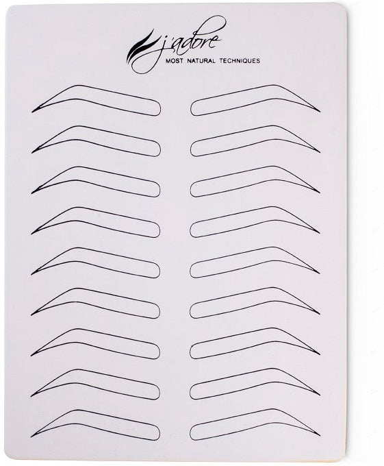 Latex practice skin with pre-drawn eyebrows and blank space in the back that can be additionally used for pressure and pattern practice.