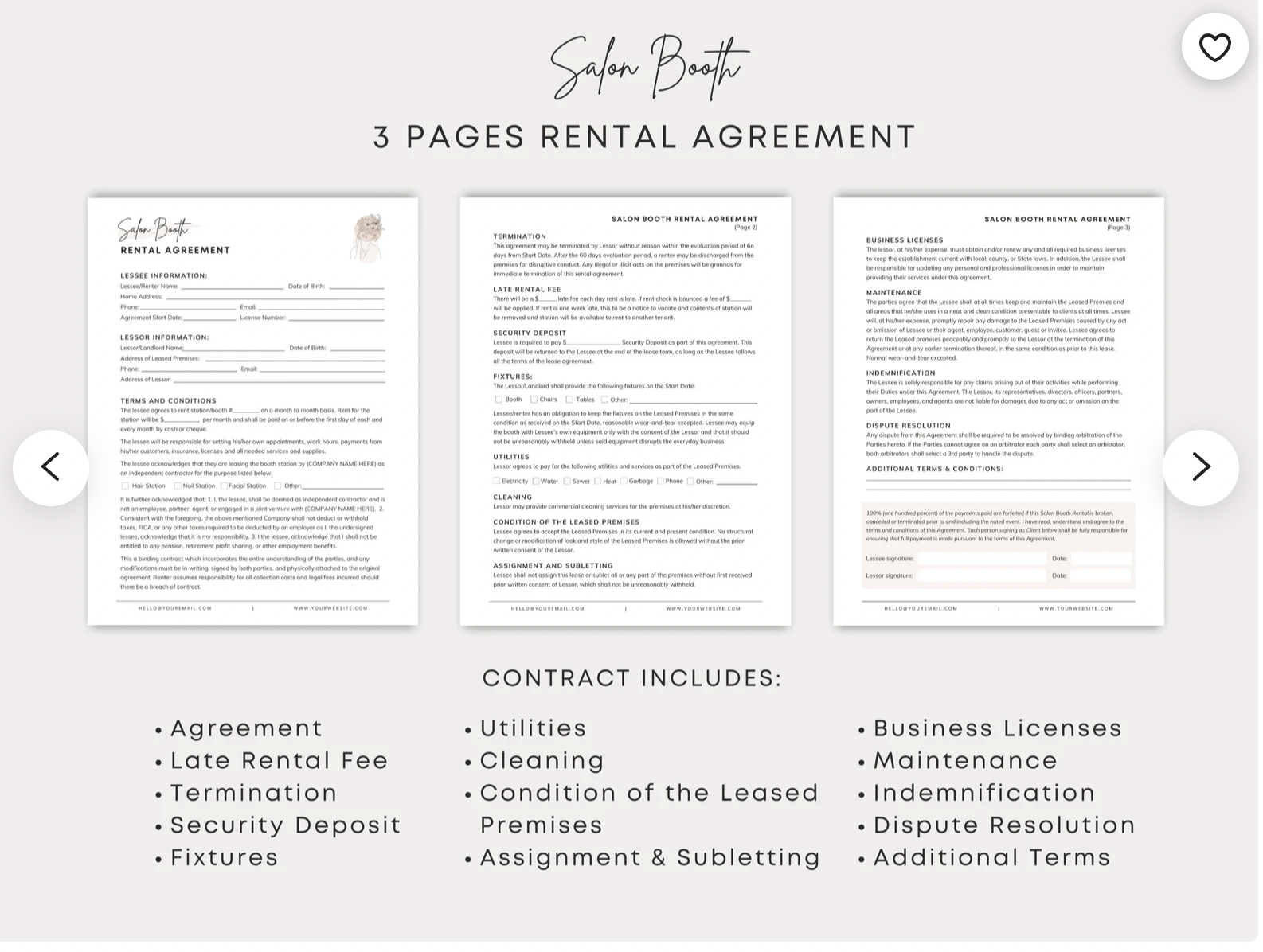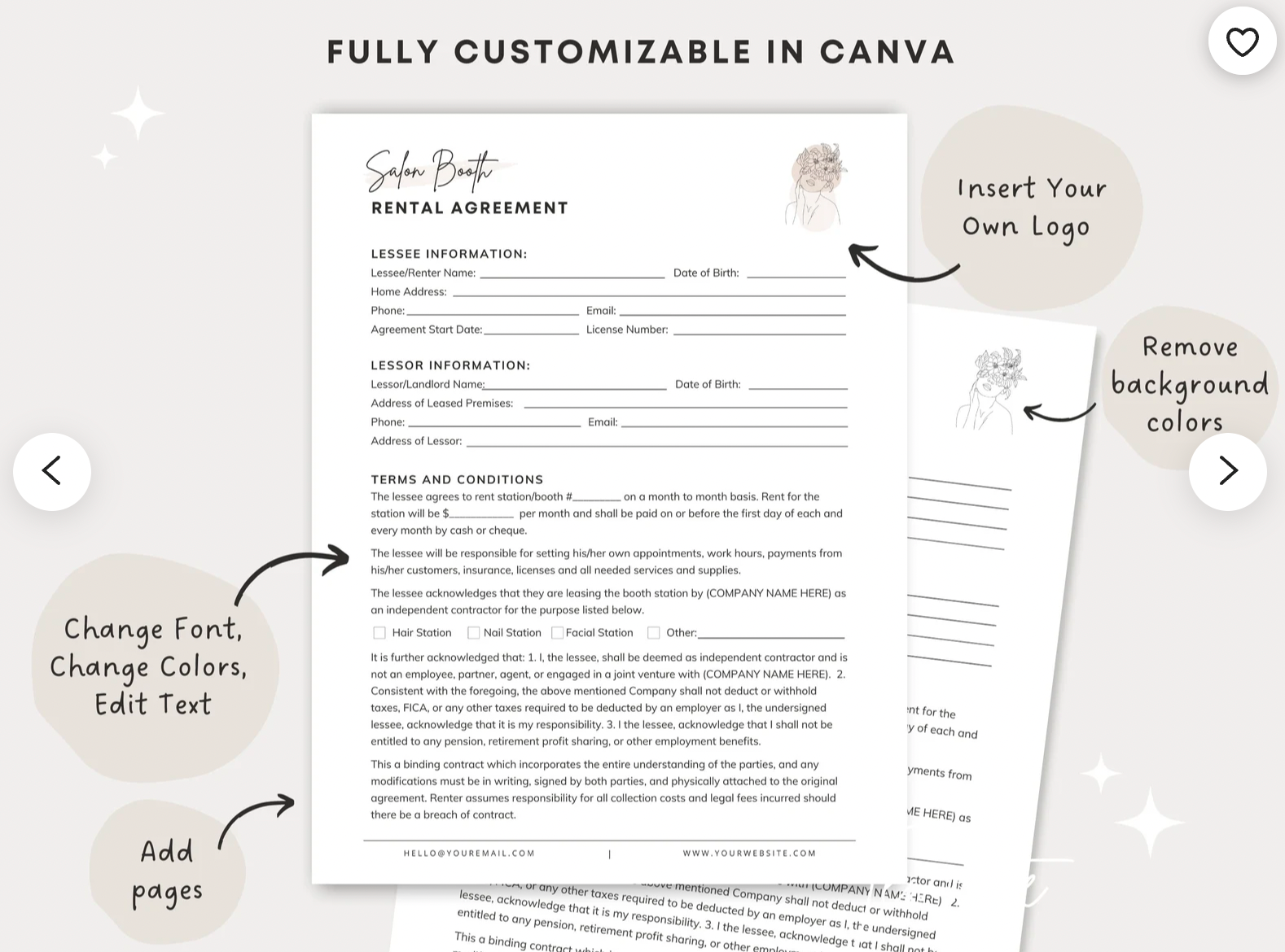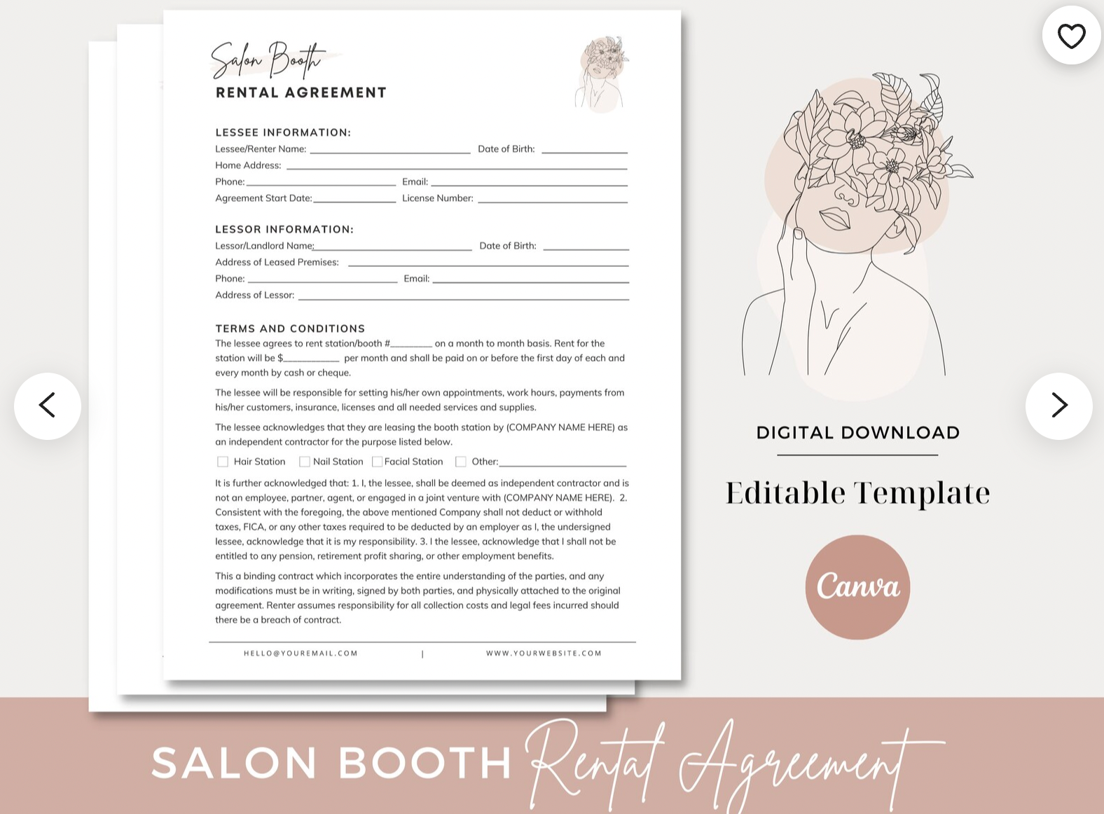 Professional Salon Booth Rental Contract, Editable Booth Rental Agreement, Salon Station, Spa Rental, Salon Chair Rental, Salon Lease, Canva.